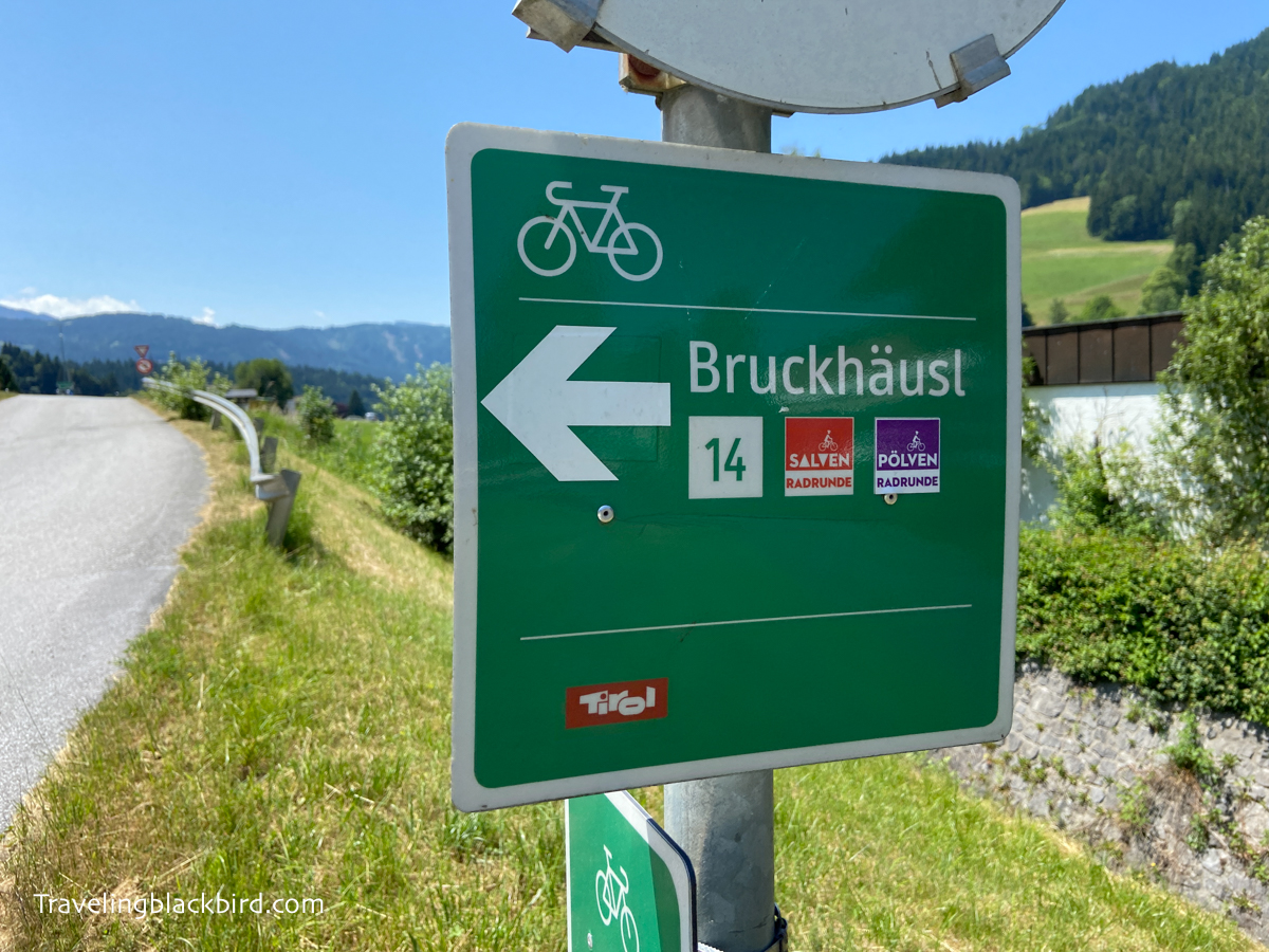 Wij vertrokken om 10:30 vanaf Gerry Sport, naast het begin van de stoeltjeslift Gaisberglift. Vanaf daar fietsen we naar het lokale toeristenkantoor om de kaart met fietsroute op te halen. We reden de Hohe Salve Ronde, van 63 kilometer. Met het stuk van de fietsverhuurder naar de start van de route kwamen we op een totaal aantal kilometers van 66,18 kilometer. (Volgens Strava). De route telt 730 hoogtemeters en volgens Visittirol doe je hier 5 uur over. Ik gok dat zij uitgaan van een gewone fiets, want volgens Strava zijn wij ruim 3,5 uur actief aan het fietsen geweest. Ondanks de elektrische fietsen raad ik je wel aan om een volledige dag uit te trekken voor de fietstocht. Zo kun je onderweg regelmatig stoppen om foto’s te maken en natuurlijk om op een terrasje neer te ploffen.